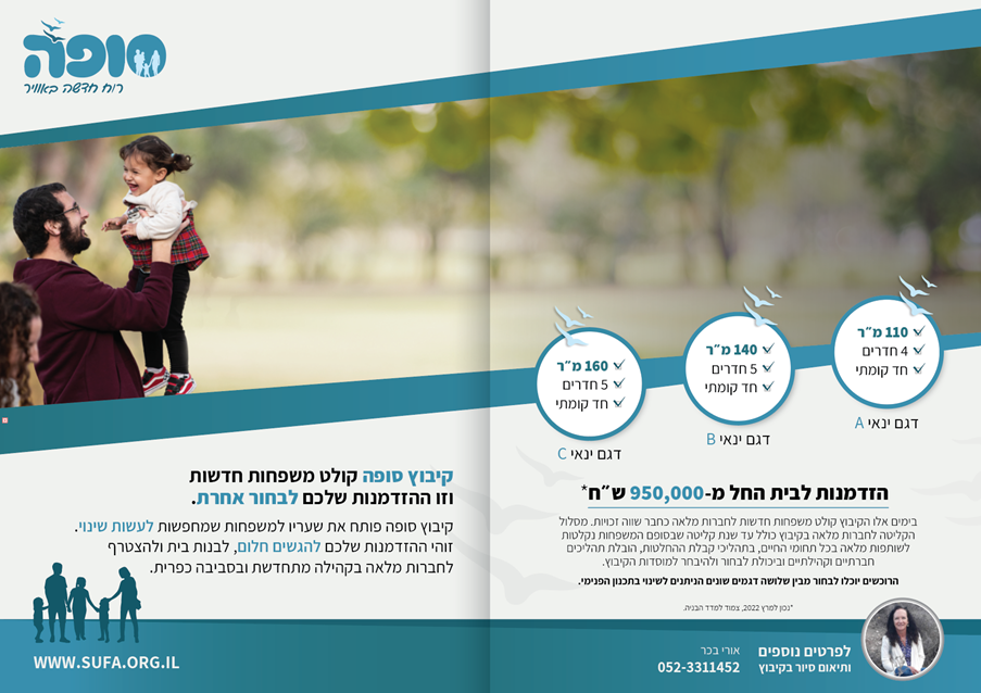 קיבוץ סופה קולט משפחות חדשות וזו ההזדמנות שלכם לבחור אחרת. קיבוץ סופה פותח את שעריו למשפחות שמחפשות לעשות שינוי. זוהי ההזדמנות שלכם להגשים חלום, לבנות בית ולהצטרף לחברות מלאה בקהילה מתחדשת ובסביבה כפרית.